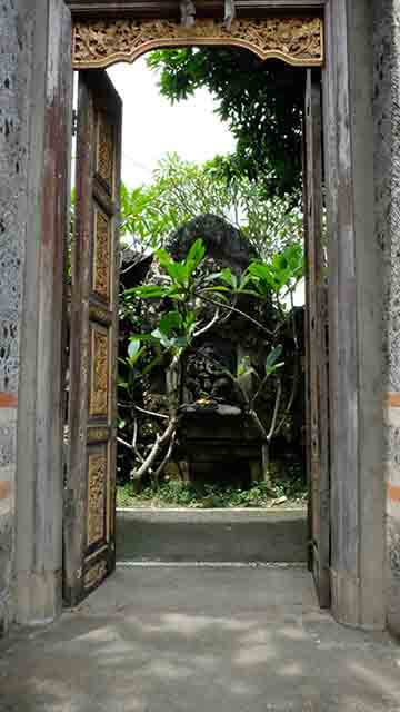 Antes de coger su tabla, reza en el templo del patio ante Ganesha con el canang sari lleno de flores y arroz. Humea el incienso. Dicen que su humo lleva la esencia de la ofrenda hasta el cielo. Oka agradece la protección de los dioses esté donde esté y haga lo que haga, y susurra un mantra: “Cree en ti, confía en ti”.