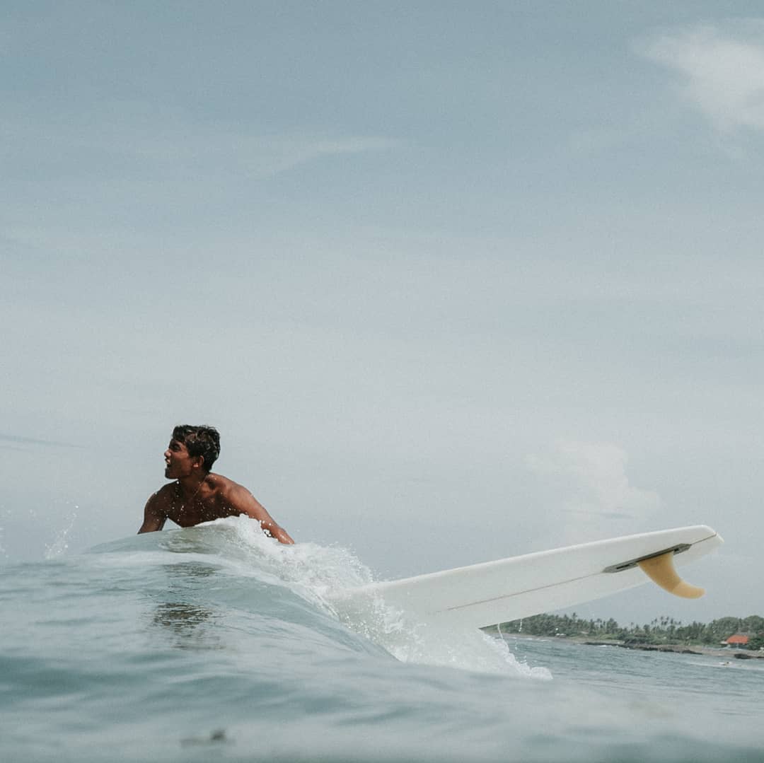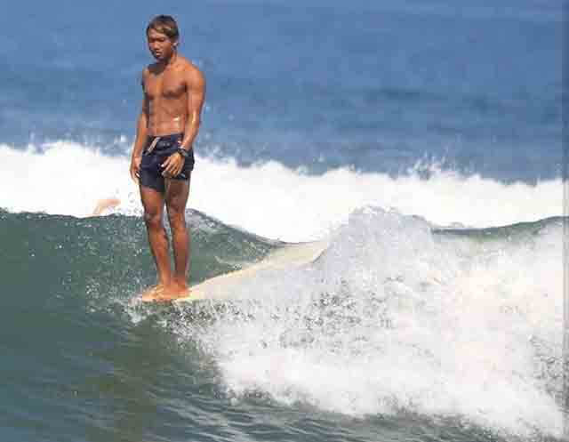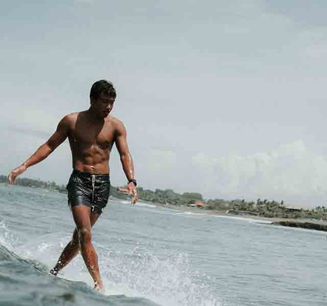 Sentado en la cocina de su casa balinesa apura el chicken lalapan del plato mientras clava la mirada en un vídeo de surf de Youtube. Dice que ahí también aprende longboard, que observa a los que saben en la vida real y en los vídeos. Deja la silla mientras de fondo se oye Tetep mekenyem de Leeyonk Sinatra. Keeep smiiiiling…