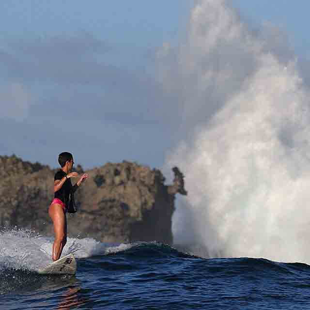 Totalmente Ainara. Surf de autenticidad y realidad. Esa maravillosa mezcla de dulzura y fuerza que se traduce en un chill surf creativo, imprevisible, lleno de flow y felicidad natural. Camaleónica, en la tabla se transforma en un animal del mar bello y salvaje. Hace poesía con las olas con una agresividad elegante. Su filosofía, el Do it yourself. Cuestiona lo establecido, rechaza las modas y huye de convencionalismos. Esas mujeres multifacéticas, diferentes, alternativas, que tanto celebramos. Una caja de sorpresas que seguirá fascinándonos.